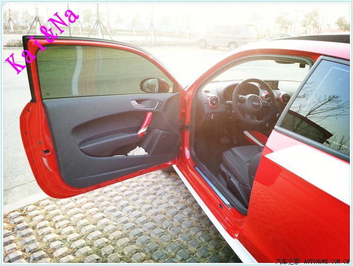3、奥迪A1 : 其实,从A1刚开始上市我就关注了这个车,去4S保养的时候也不止一次的和媳妇说我们以后买个A1给你开,但是后来媳妇也没购车需要,就暂时搁置了。放弃了甲壳虫以后,我和媳妇跑4S谈A1的优惠,4S的价格一直咬在8折不放,这自然没有达到我的心理价格,后来我们的造人大计马上要实施,媳妇说要不等等吧,反正买回来也不怎么开,不买了先,购车计划就这么又一次被搁置了......一天晚上在QQ和当初买A6L的4S店的销售总监(一个和我有同样轮滑爱好的朋友,后来做了4S的销售总监)聊天,说起我媳妇想买个车,他说店里有2台奥迪A1中国红限量版的车搞特价,7折就出,我赶紧上网查了一下中国红限量版的车子的配置和图片,然后就定下买这个车子,但是我的兴奋心情不能让4S知道啊,我就安耐住,给那总监朋友说,要不你再用你的权限给我弄点优惠呗?包括赠品神马的。 那朋友倒也真诚,就说你全款购车我送你5000元保险吧,然后给你赠送全车琥珀光学贴膜、***、后备箱垫、奥迪钥匙扣随便你挑,我一听,马上定下就你了!然后第二天就驱车赶往4S去签合同提车。