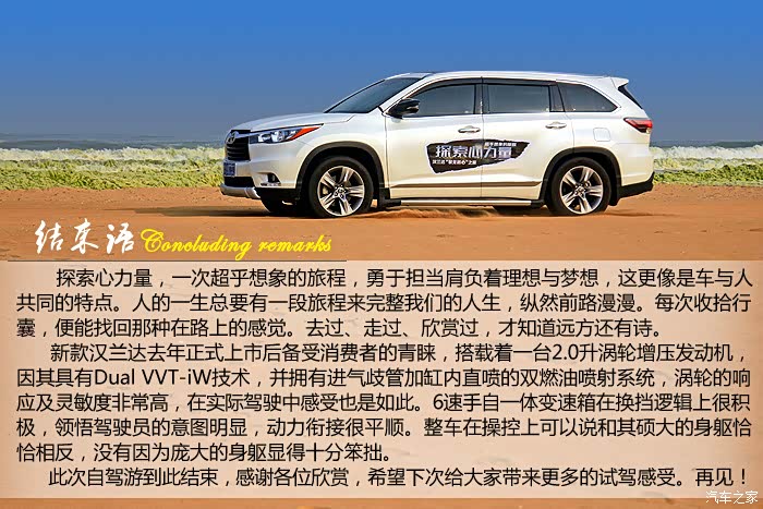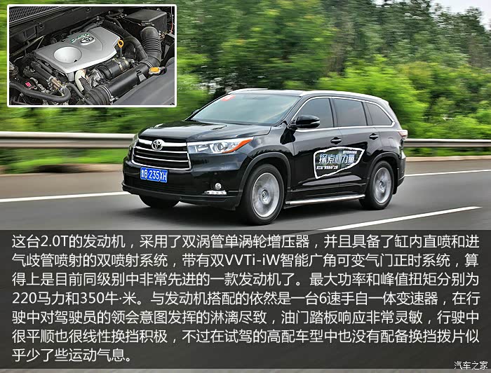 新款汉兰达在去年正式上市后备受消费者的青睐,不仅因为7座车型的需求,更多的是来源于品质,较高的关注与市场火热的表现,让它一度成为一车难求的新宠。想要了解它并不难,但是想深度了解?那就不要错过这篇游记。全新汉兰达搭载了一台2.0升涡轮增压发动机,将排气歧管与缸盖集成为一体,同时采用水冷式中冷器,这两种结构都有利于提升涡轮的响应灵敏度,减轻涡轮迟滞现象,在实际驾驶中感受也是如此。6速手自一体变速箱在换挡逻辑上非常积极,领悟驾驶员的意图明显,动力衔接很平顺。整车在操控上可以说和其硕大的身躯恰恰相反,没有因为庞大的身躯显得十分笨拙。