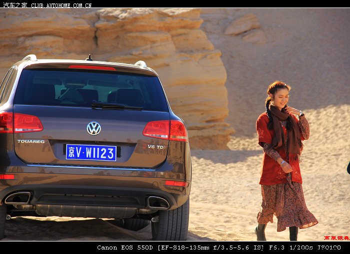 从哈密出来以后,到景区门口约80公里,然后开车进去约有20公里,没想到这次碰到了大众途锐(2011款)选择在此拍宣传片,车车试了一下,很不错,更让人惊喜的是有美女呢!闲话说完,上PP