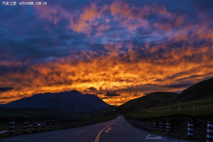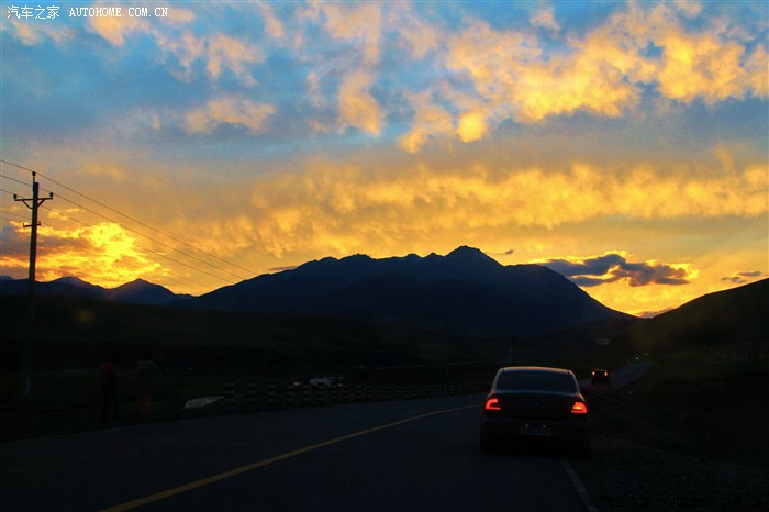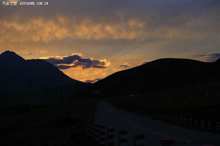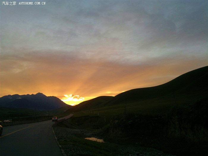 刚过“阿柔大寺”大概七点半左右,随着太阳西下,霞光照亮云彩,渐渐形成“火烧云”。霞光万丈,令队友们兴奋不已。这是我们偶遇的又一个沿途自然景观。上帝真是眷恋我们呢!