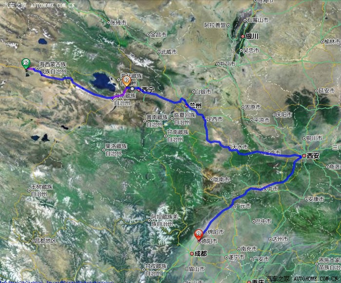 德令哈市----------西宁------------兰州------------西安------------广元---------德阳