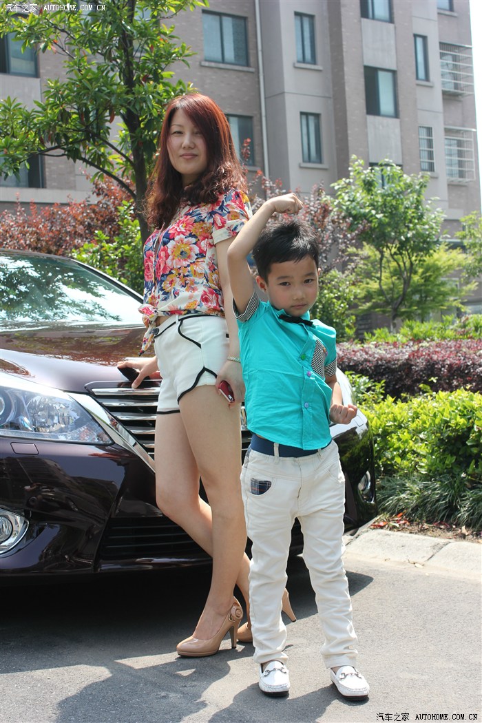 光洁的车身、老婆的美腿、帅气的儿子,一幅美丽幸福的画面。