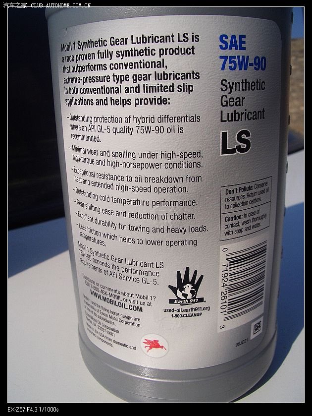 全合成机油的毒性传染给齿轮油,于是美版美孚1号全合成齿轮油GL-5 75W-90进入了我的选择范围,经过一系列的选择与对比最终选定了这款全合成齿轮油。