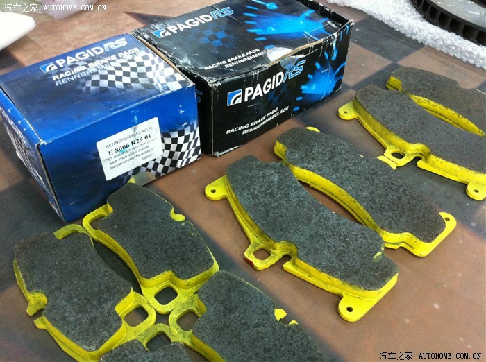 刹车片选用的是德国PAGID RS29 耐高温赛用刹车片 ,比普通刹车片性能更强,更耐高温,适用于赛道,PAGID这个品牌也是保时捷原厂刹车片代工厂商之一。