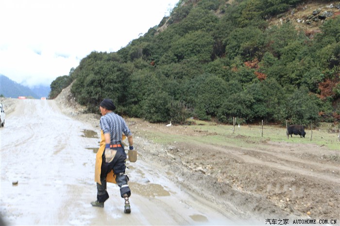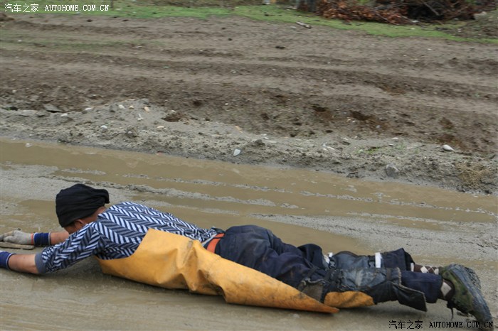 这里许多车都拖地了不管什么车 不过到我们运气比较好,前面拖底的车把这地拖平了 加上卖力的藏族司机拿铁锹在弄越野车过没问题 不过小车还是会拖底的。