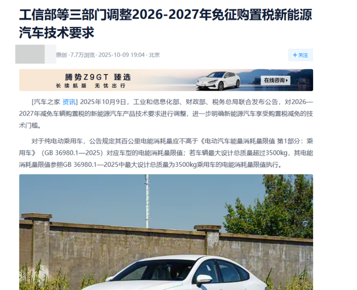 为何要聊这个话题,皆因国庆后的第一个工作日,“工信部等三部门调整了2026-2027年减免车辆购置税新能源汽车产品技术要求”(https://www.autohome.com.cn/article?id=05FxJM1_hFA=),并且我还在网上刷到了讲述“混动车满油馈电,高速油耗测试,谁才是真正的混动王者”的视频。