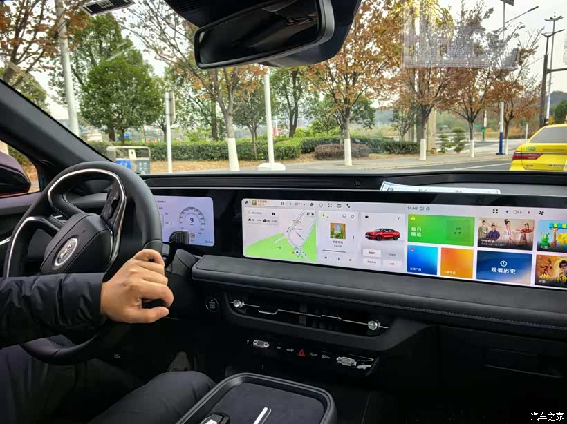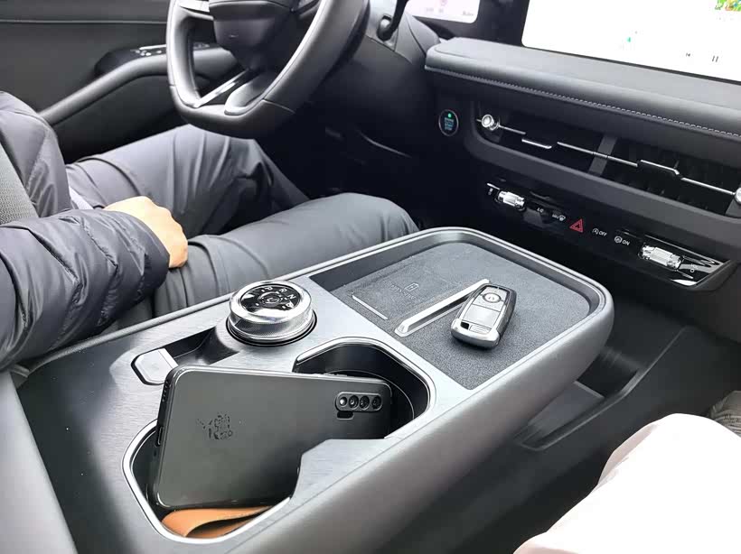 坐进车内也惊喜,控制台换成悬浮式的造型了,还挺别致,主要是下方多了储物空间,上面又有50w无线快充,更简洁但又实用了。中控台尺寸没变化,但是多了8155芯片,UI界面也优化了,现在更清晰明了,流畅度能媲美电车,而且想用carplay也可以连了,高德地图也有,之前大家呼声比较多的,现在都安排了。540°全景影像透明底盘太实用了,窄路会车、倒车入库时,周围情况看得一清二楚
