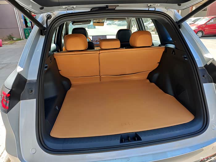 我177的身高坐在后排,膝盖离前排座椅还有两拳多的距离,头部空间也很充裕。后排纯平的地台设计特别贴心,中间没有凸起,孩子们可以在后排自由地换座位、玩游戏,我妈也能轻松把脚伸过去,长途乘坐不会觉得憋屈。