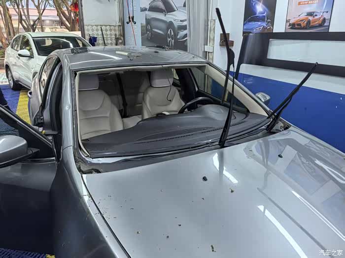 4. 前挡玻璃拆除及安装(打完玻璃胶后,新玻璃安装时的照片忘记拍了)