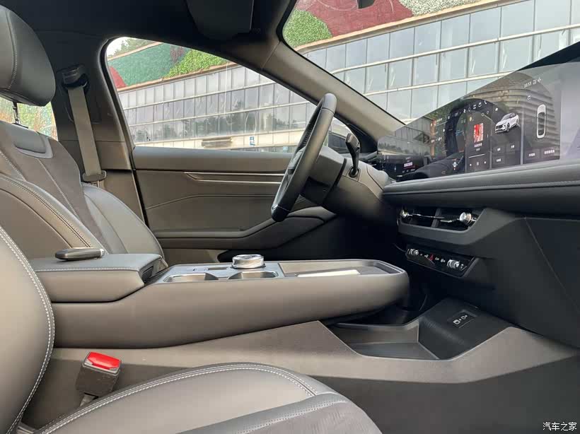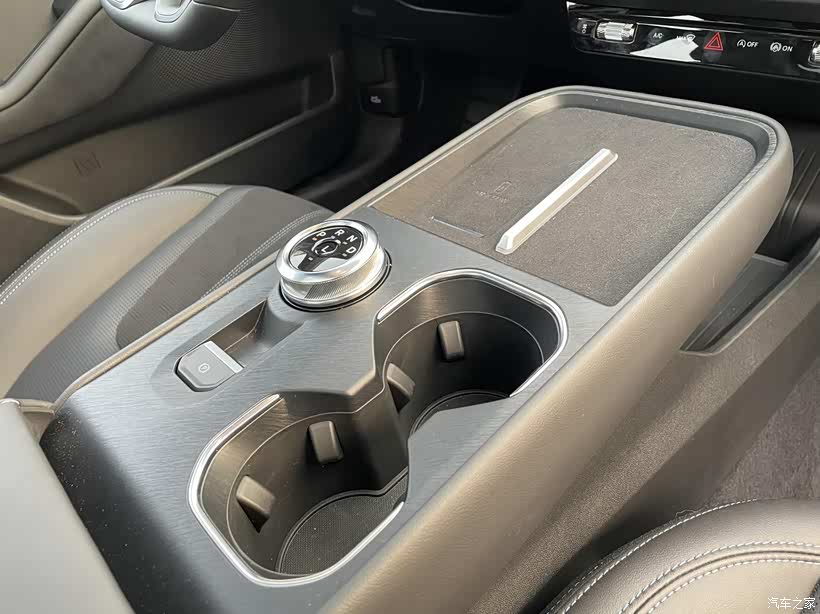 控制台是我很喜欢的一个地方,功能分区明确,换挡、水杯架、50W手机无线快充,下面镂空地方放纸巾和杂物。