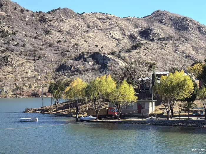 两个半小时的车程,我们便抵达遵化上关湖景区,这里是去往汤泉镇的必经之路,一路上欣赏美景也才刚过上午九点。上关湖三面环山,一面临水,清晨的薄雾还没完全散去,湖面像一面被熨烫过的绸缎,泛着淡淡的水汽。远处的山峰连绵起伏,山体被苍翠的松柏和金黄的灌木覆盖,层次分明,倒映在湖水中,形成一幅绝美的山水画卷。