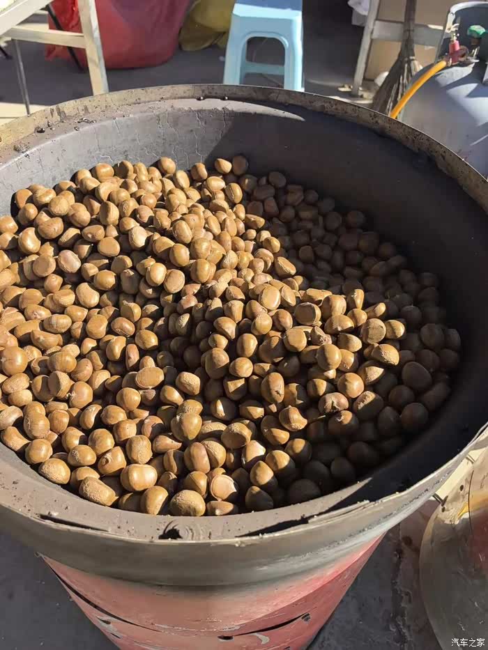 集市上的摊位一字排开,摆满了各种农产品。红彤彤的苹果堆得像小山,表皮光滑透亮,带着新鲜的果香;金黄的栗子装在竹筐里,外壳油亮,摊主正拿着铁锅翻炒,“噼里啪啦” 的声响伴随着浓郁的焦香,让人忍不住驻足。遵化盛产板栗和山楂,现在也正是板栗和山楂成熟季节,遵化特色的板栗酒只有当地才有。红香酥梨和山楂品质非常高,适合带些回家。