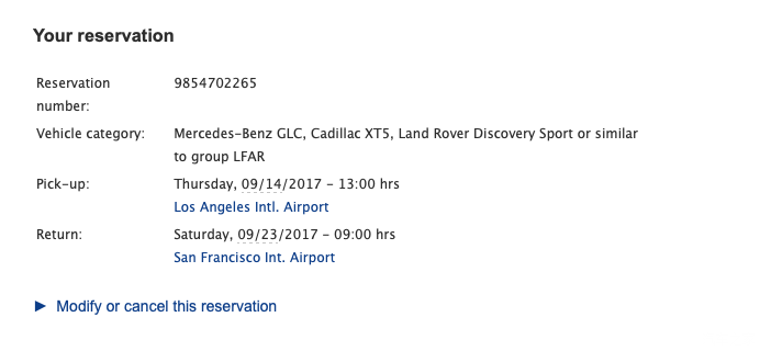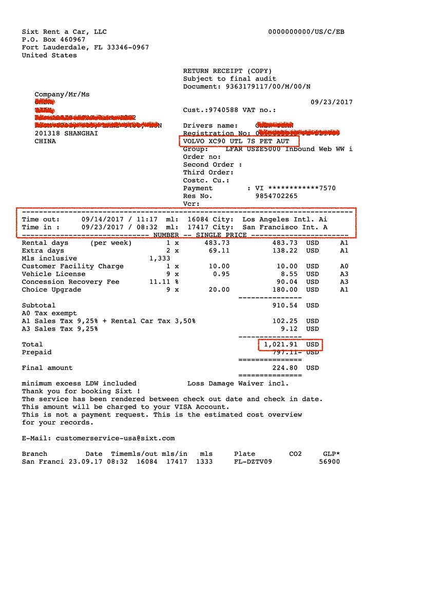 在洛杉矶机场的SIXT提的车,一路办事,最后从旧金山回国时,还到了旧金山机场SIXT的门店。9天时间开了2100多公里,租金一共花了1022刀。