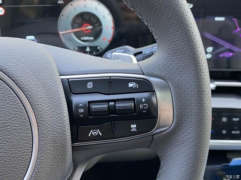 这车的方向盘大小刚好,握感很扎实。转向力度不重,在市区里拐弯抹角很灵活,而且上面的多功能按键布局逻辑很清晰,切歌、调音量都在大拇指控制范围内,盲操没问题。