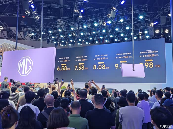 让你们看看MG4上市现场热不热闹,现场那叫一个人声鼎沸,几乎都在欢呼这车的价格,起售价6.88万。