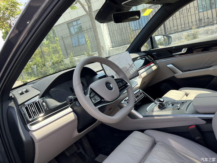 坐在车里,它又是一个很舒适、功能丰富的私人空间。NAPPA真皮的座椅,坐垫宽大,用料很好,坐着非常舒服。中控那块可以旋转的大屏幕,连上5G网络之后,就是一个功能强大的娱乐平板。等人或者在服务区休息的时候,可以在线看电影、听音乐,或者刷刷新闻。它的语音控制系统,也能让你很方便地控制车里的各种功能,营造一个自己喜欢的环境。
