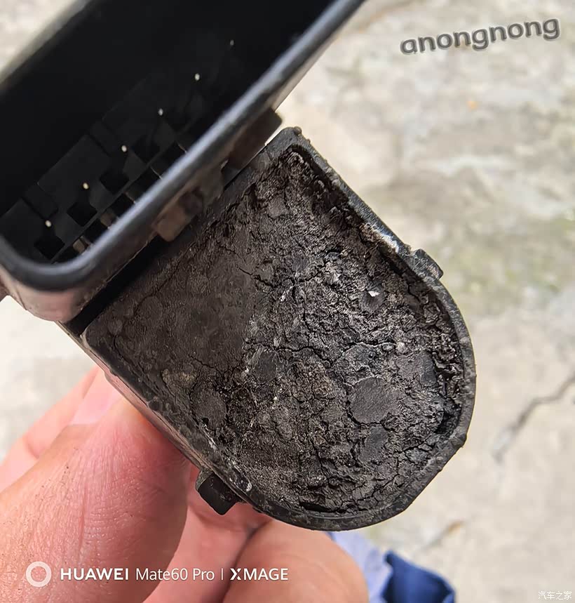 这是我刚刚拆下来的旧的损坏模块,肉眼可见密封胶层已经龟裂,应该是裂到内部了,下雨天细小的雨珠会随风吹到这里渗进内部电路,就出现故障了。