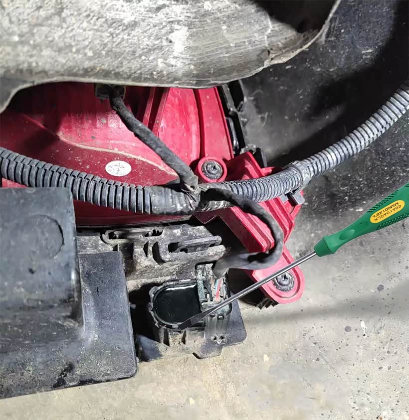 再把上部卡子这里撬一下,与此同时左手从保险杠外侧雷达顶点处推一把,这个模块就松动了。
