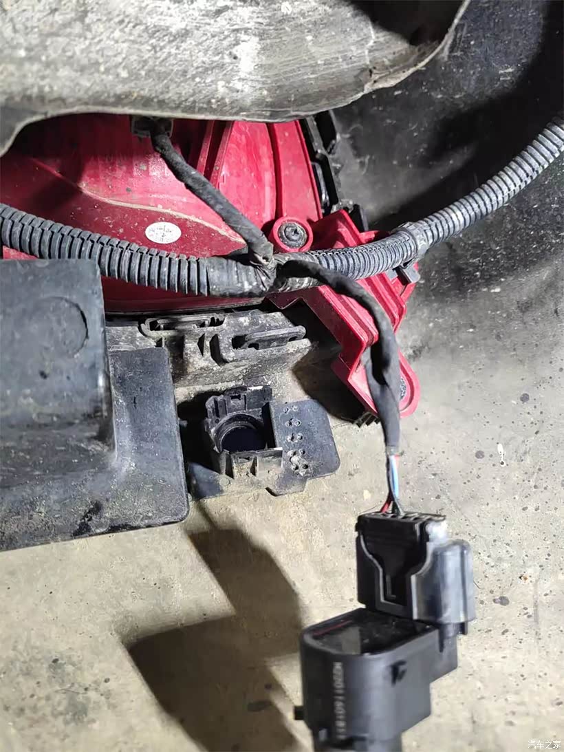 这是一位车友拍的照片我给修改了一下,用来解说,因为我自己换的时候拆的过程也就十来秒钟吧,全程只需要一把一字的小螺丝刀,手电照明或者手机照明,没时间和心思拍照。安装更简单,插头插座对接很简单,然后往底座上一按,卡到位就好了。然后就是试车。