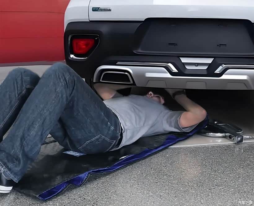 看了其他车友的经验,无非就是一块平地,直接躺在后保险杠下边,就可以看见左右两侧的模块,直接换,所以我找了两张图片,告诉车友们,就这么干吧。这是图片不是照片,只是示意,我就是用的遮阳挡和一件旧衣服铺地上,躺的时候不要躺在保险杠的后方,那样还要蹭到车肚子底下挺费事,直接躺的时候歪一点,头歪一点靠左后轮那边,躺到后头一转就正好能看见左后雷达模块的位置了。