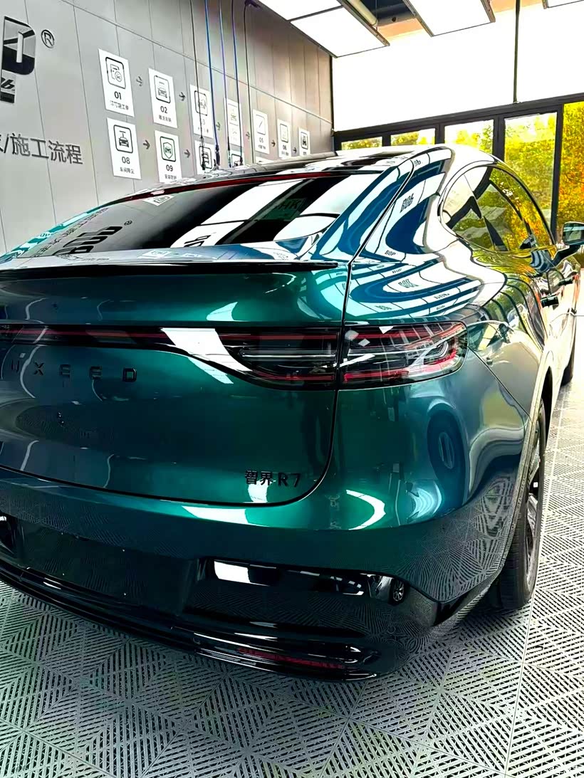 不得不说贴了膜的R7是真亮,买这个颜色一定要贴显亮的车衣,不然不好看。经过一天的奋斗,许总店里的小伙子们,搞定了车衣。中间有个小插曲,这个R7不能网上提交资料审车。还要去现场审车。只能先让许总给贴了车衣,第二天我又自己开车去辛安车管所审车。。耗时3个多小时,太慢了!!拍照,打资料。等的我都不想等了,终于好了。