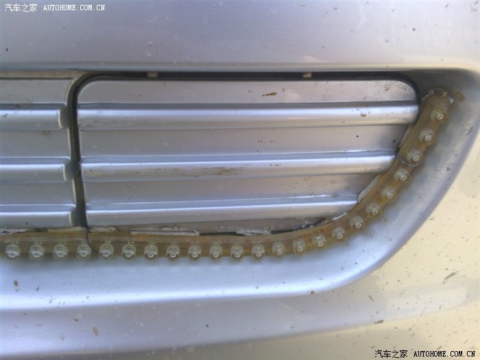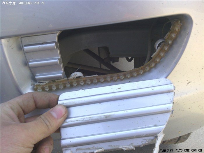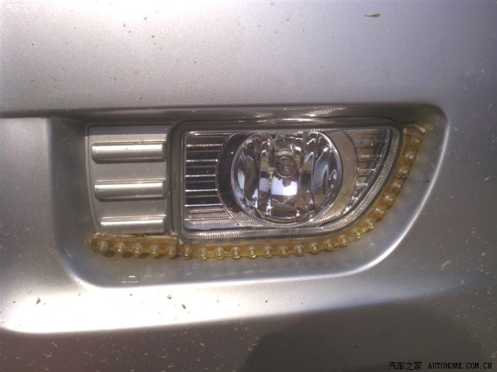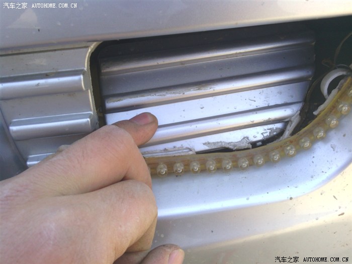 这是原来的雾灯的位置,现在把它拿下来。用刀子割。