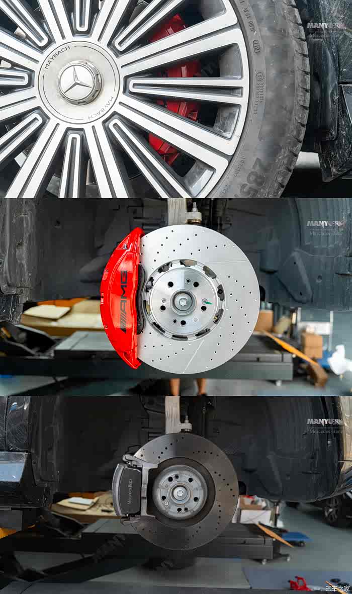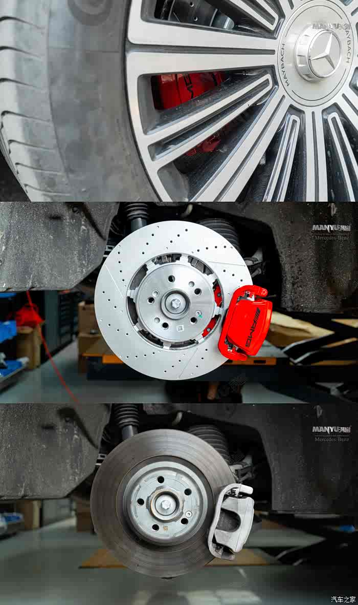 就打算升级原厂前六后一刹车+原厂3D大柏林,让原本就舒服的GLS480变得更加舒服!选了家专业做奔驰改装的,离我也比较近,就在广州番禺,过去也方便,实地考察后果断放心 —— 和网上宣传的一模一样,只做原厂配件,店里还刚好有其他迈巴赫在改装,师傅们操作轻车熟路,一看就是老手,很放心就干脆现场下单,刚好有现货,可以隔天就可以提车。