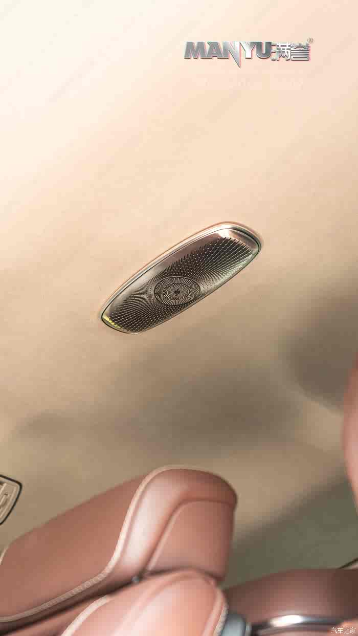 顶棚 5 个高音扬声器布局于前排眼镜盒与天窗横梁处,3 个氛围灯喇叭罩增强 3D 音效垂直声场