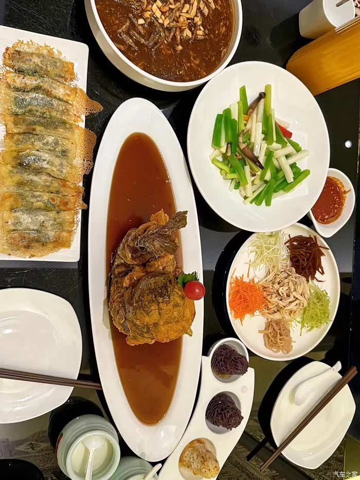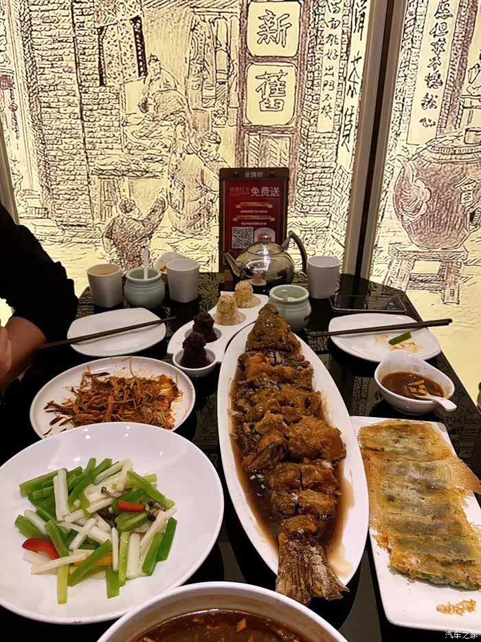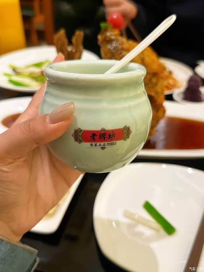 晚饭自然还是解放路上的老牌坊菜馆了,表舅早早就订好了餐位。招牌菜糖醋鲤鱼必然是重中之重,当这道菜端上桌时,立刻被其精致造型吸引,鲤鱼昂首翘尾,色泽红亮诱人,宛如跃水而出。夹起一块鱼肉,外酥里嫩,酸甜适口的酱汁牢牢裹住每一丝鱼肉,口感层次丰富,酸甜不腻,果然不负 “鲁菜经典” 的盛名。配上几道地道鲁菜小菜,喝上一碗热乎的全羊汤,舌尖的满足与旅途的愉悦交织,幸福感油然而生。