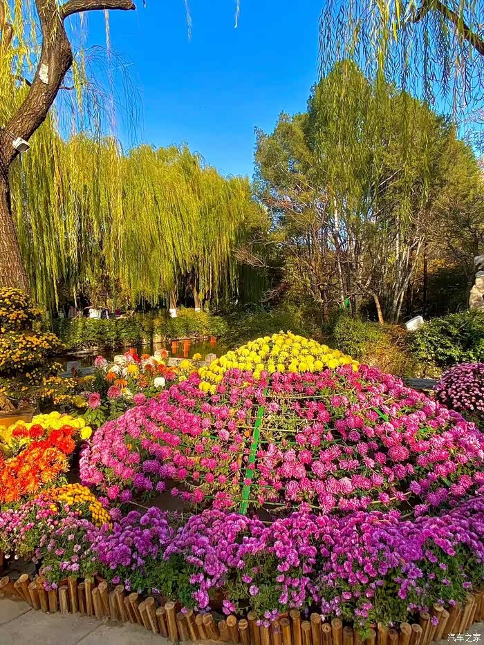 正好赶上趵突泉一年一度的菊展,和表妹约好一起逛菊展。入园瞬间便被铺陈开来的秋菊惊艳。将风神A60停在景区专属停车场,利落的车身在晨光中格外亮眼,便捷的停车辅助功能让新手也能轻松泊入车位。园内万菊竞放,红似霞、黄如蜜、白若霜,复色菊带着水墨晕染般的雅致,或立或垂,姿态万千。沿着青石板路前行,“天下第一泉” 的三股水奔腾不息,泉水清冽见底,与岸边盛放的菊花相映成趣。我们举着相机不停定格美好:临泉而开的白菊沾着晨露,宛如仙子;观澜亭旁的丛菊簇拥古亭,碧水、繁花、飞檐构成天然画框,花香混着泉水的清甜,让人沉醉在这秋日限定的雅致里。