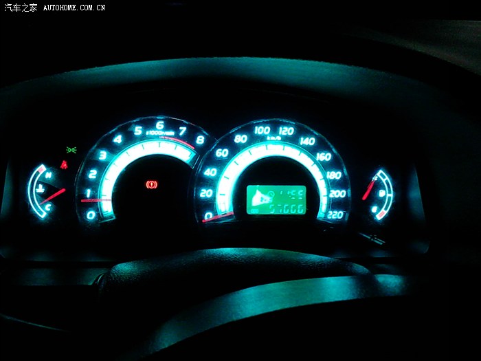 经过长时间的酝酿,今天本人把车的仪表盘灯改成冰蓝色,由于操作太过于心急把公里数显示屏弄破啦!配件也不好买,都是卖仪表盘总成的.不多说了先上图闪一下眼睛吧!
