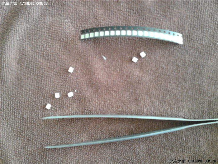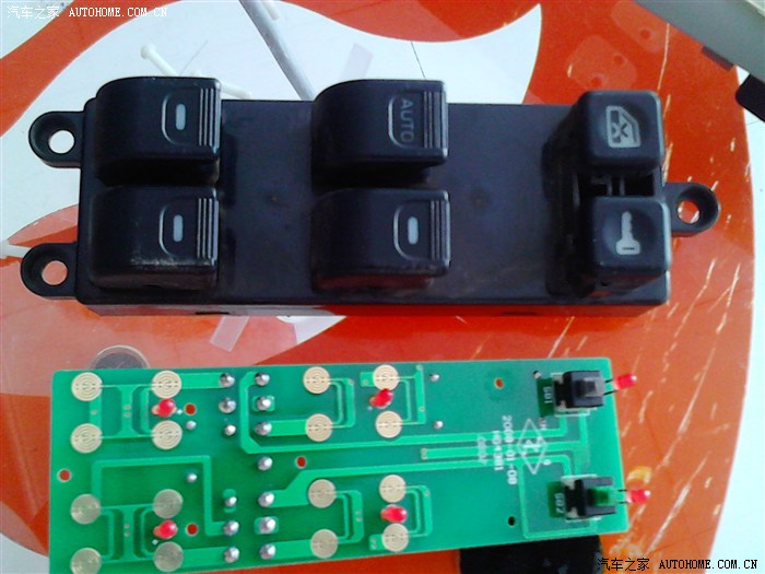 现在上图说说玻璃升降开关改冰蓝色.直接从打开开关总成开始.看到红色的小灯没有?就把它们换掉