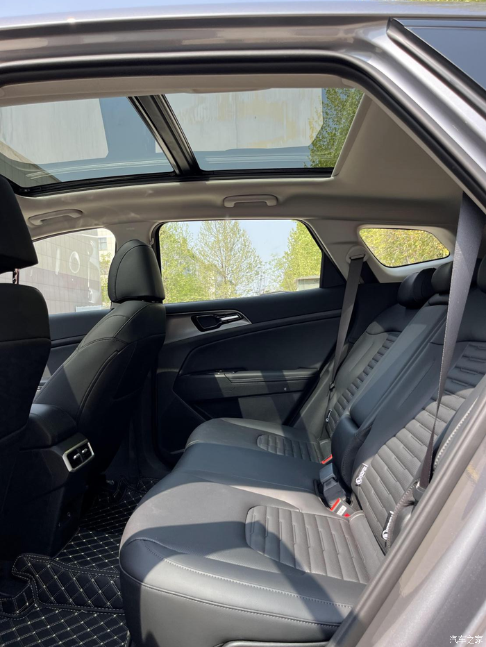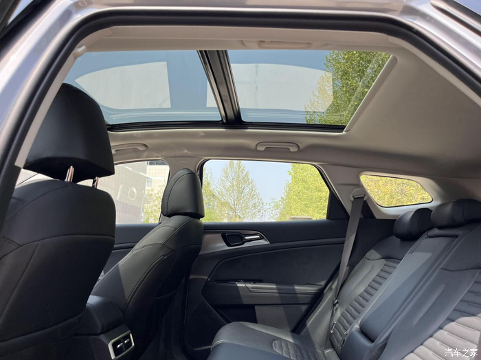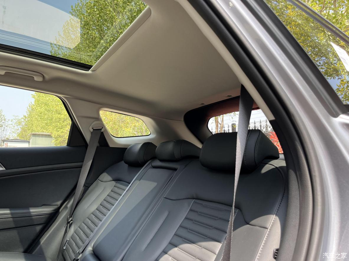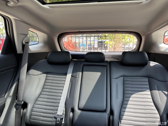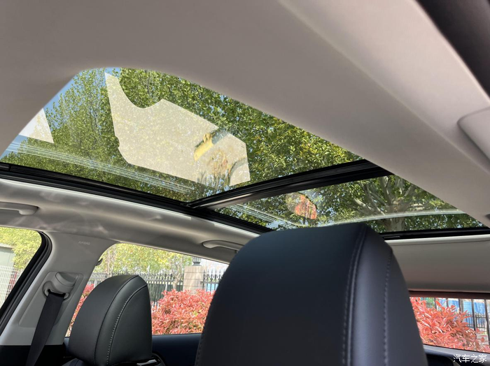 全景天窗一看,车内瞬间亮堂了很多,坐在车内一点儿也不压抑。