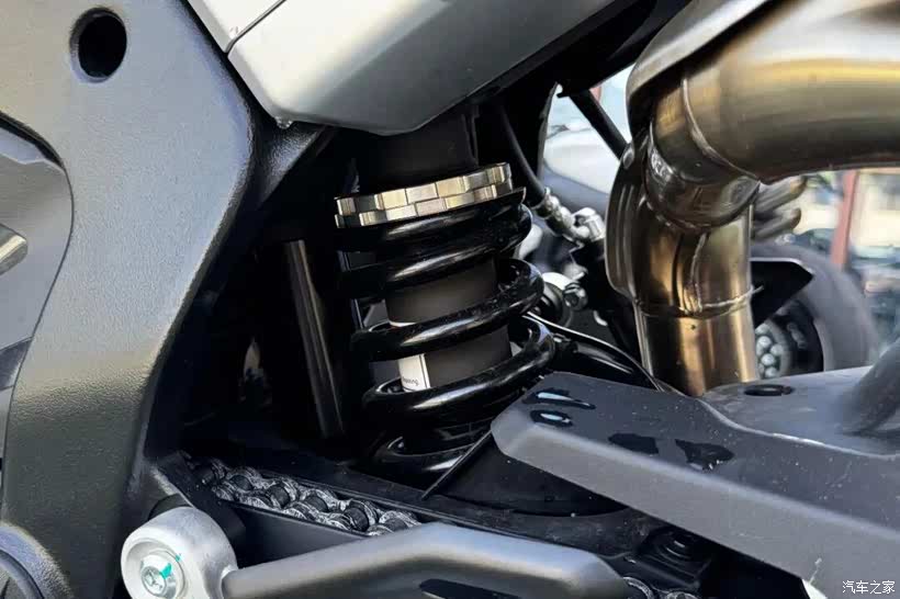 底盘方面750SR-S同样有着出色的表现,其中减震上搭载前43mm KYB倒置前减震,支持预载可调并提供20段压缩回弹调节;后减震则为KYB外置气瓶后减震中置多连杆结构,这套减震组合几乎能够满足所有路况或驾驶习惯的需求,如果不是极限使用的话后续也能省下改装的成本。