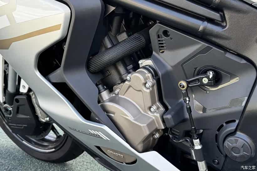 说完外观和配置上的表现当然要介绍一下750SR-S搭载的这台直列四缸水冷引擎。这台引擎完全由春风独立自主研发,并且在结构和体积上都有不错的表现。引擎实际排量为749cc,拥有82kW/10,250rpm的最大功率和80Nm/9,000rpm的最大扭矩,最大马力111.5匹,在双口冲压进气的作用下能够额外提供2kW的功率。