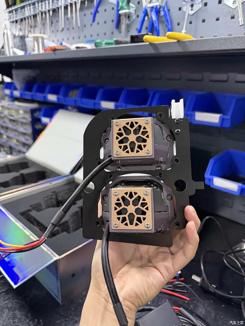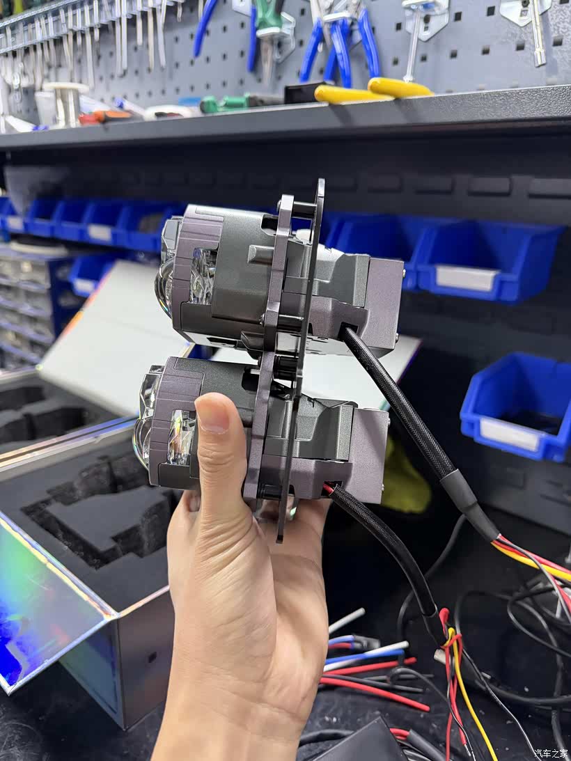 2套3寸透镜的专车支架..左上是风嘉解码器。4个。 2个负责近光 2个负责远光
