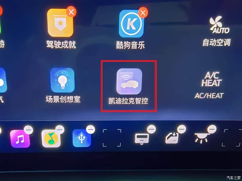 在车机软件中找到“凯迪拉克智控”图标,点击打开;