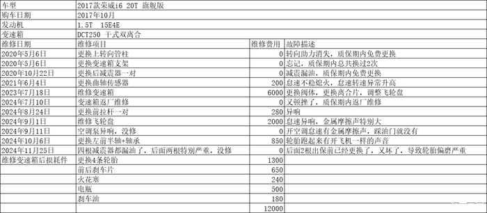 今天发这个帖子是因为闲着无聊把我旧车维修费用罗列了一下,从下面我列出的图表可以看出,质保期内随便开,有售后,出了质保期内随便开,坏了直接换新车,6年的老车,大故障直接扔!别修真没意思,因为车龄到了各种部件寿命都到了,从我修变速箱开始,就是个坑,一个一个的要修,像空调泵,4根减震器,如果我要修,维修费用直接完爆老车残值,我旧车今年卖给二手车商才1万不到,就是这么不值钱。
