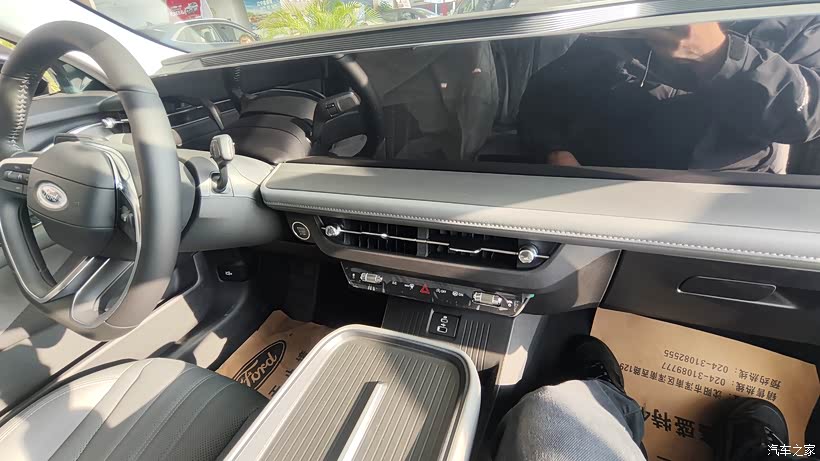 我在这里看车的时候,又来了几波看新蒙迪欧的人,真是火爆!再来感受一下副驾驶的空间和舒适度,相当完美,扶手箱前端位置变成了半连接的样子,挺个性的,主要是操作空调和去下面取东西更顺手了,真人性化