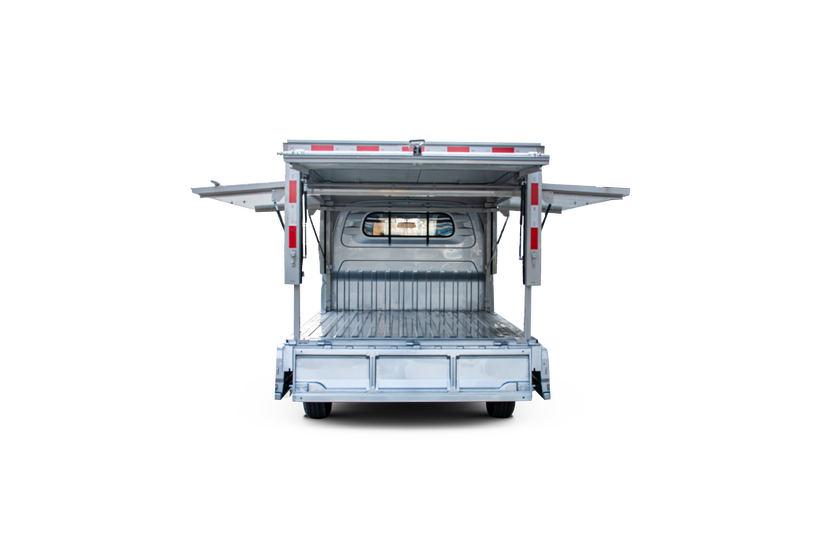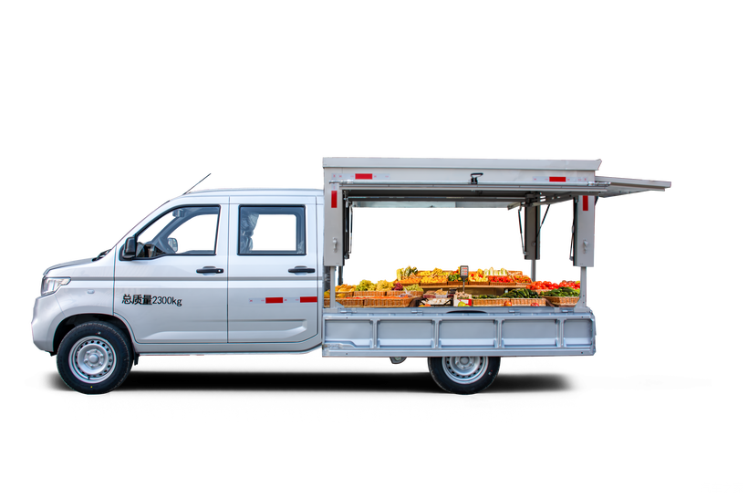 作为 “移动店铺”,这款售货车最让使用者省心的是其对经营场景的高适配性。三翼展门设计支持三面货厢开启,使用者不用额外搭建货架,打开车门就能全方位展示商品,不管是卖小吃、果蔬还是日用百货,都能快速吸引顾客,装卸货物时也不用反复搬运,效率大幅提升。而侧门 + 尾门的隐藏收纳设计更解决了 “找场地难” 的问题 —— 收缩后一个车位就能摆摊,小区门口、市集角落、商场周边等空间狭小的地方都能轻松停靠,不用再为抢占大摊位费心。