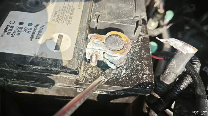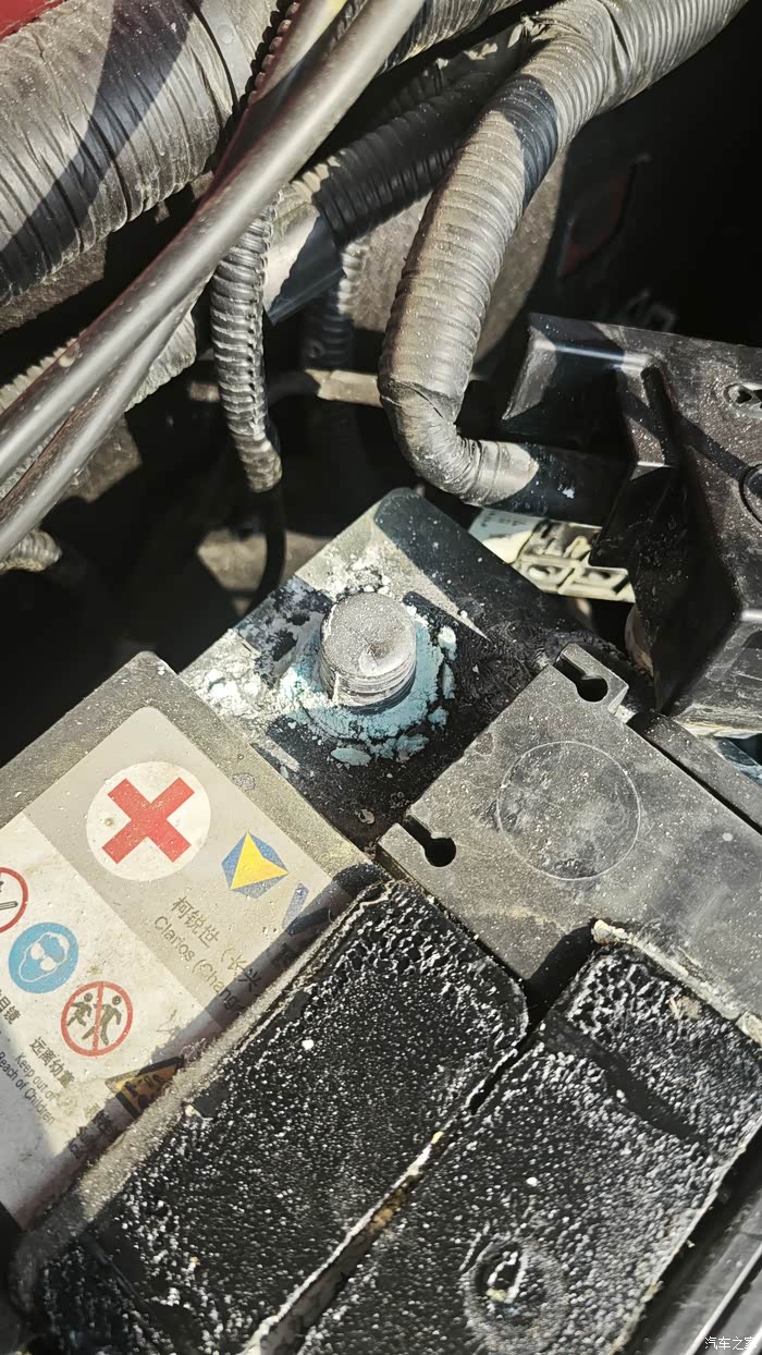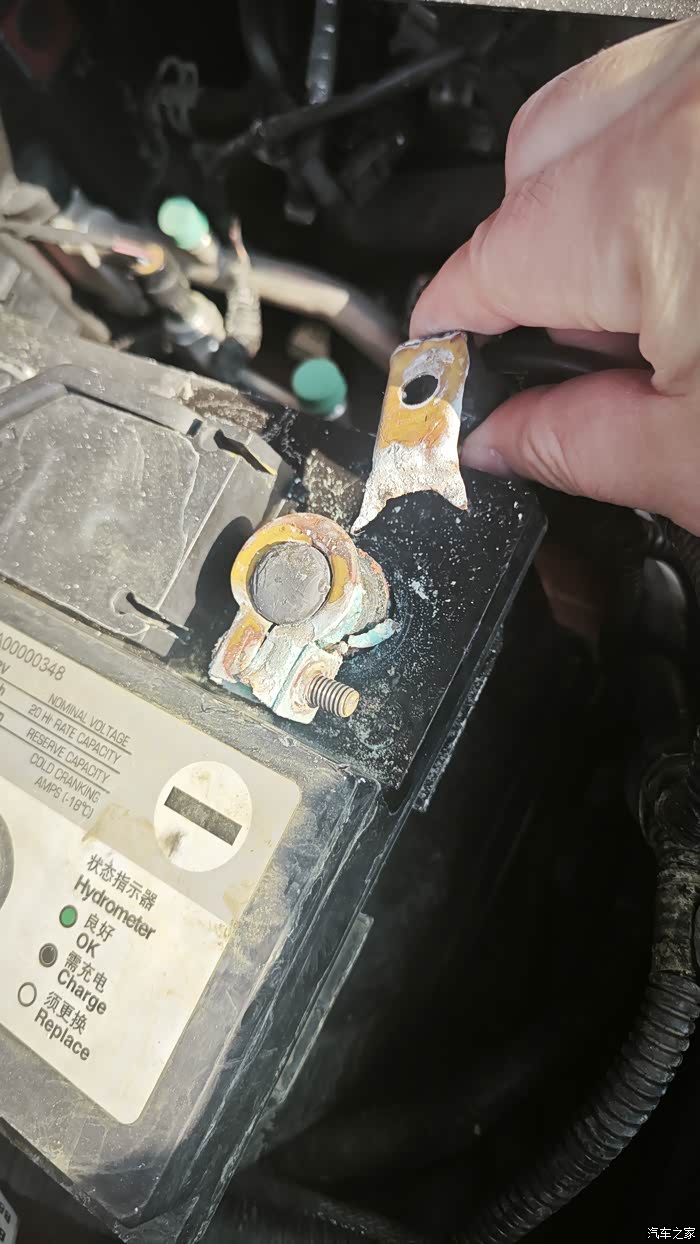 结果今年年初就拉了个大的,人在川西自驾的过程中,晚上到了酒店熄火后锁车,发现没动静,再次启动也启动不了,所有按钮全部失效,瞬间想到要么供电出问题,要么行车ECU有问题,先看电瓶,果然是电瓶负极接线端子被漏出来的电瓶液长年腐蚀直接断了。
