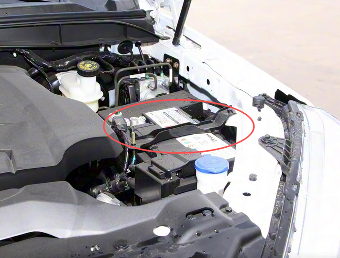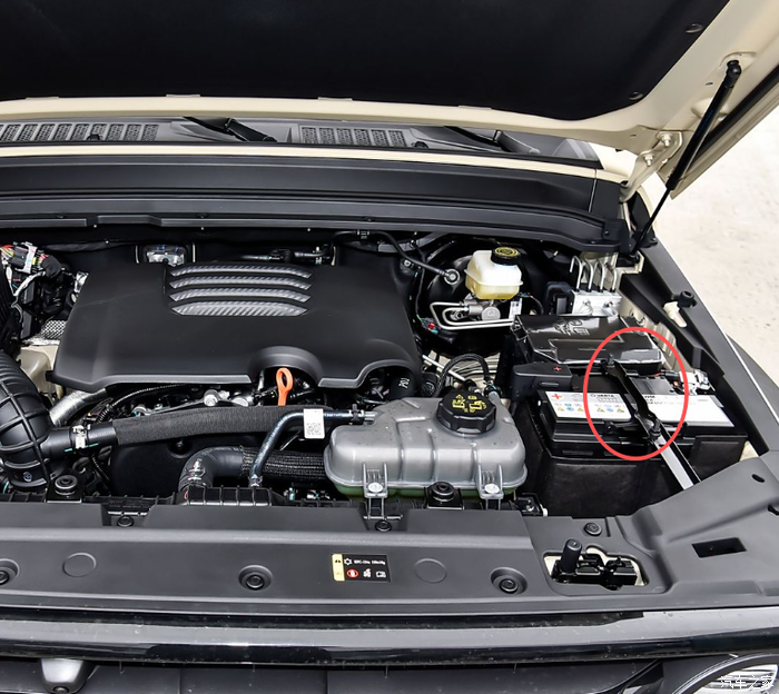 这是驭胜S350的电瓶固定,拆掉横杆就能取出电瓶。