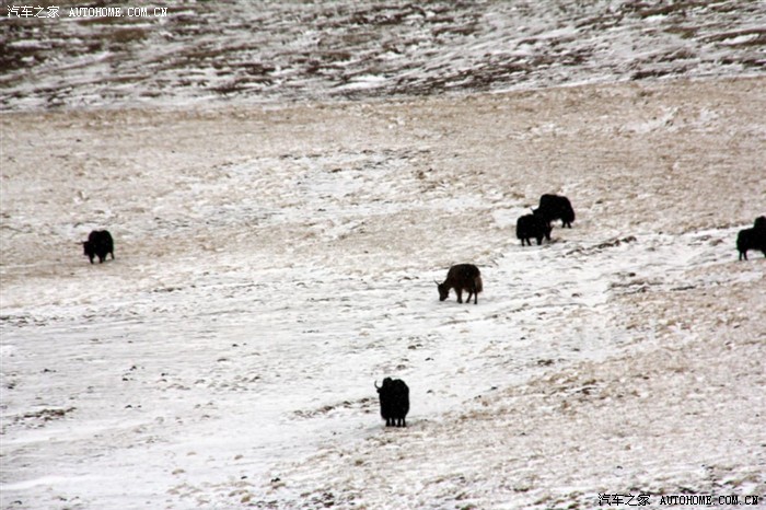 继续走吧!我们看到了牦牛在雪地里还在寻找吃的