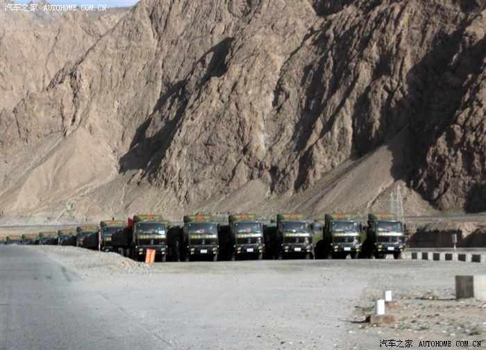 青藏线上的汽车兵是一道亮丽的风景线,他们一队一般分成若干组,每组都有领路车和收尾车,我们数了一下,每组大概是30辆车。所有的车都保持基本相等的距离,并且看他们的开车姿势也都很标准。