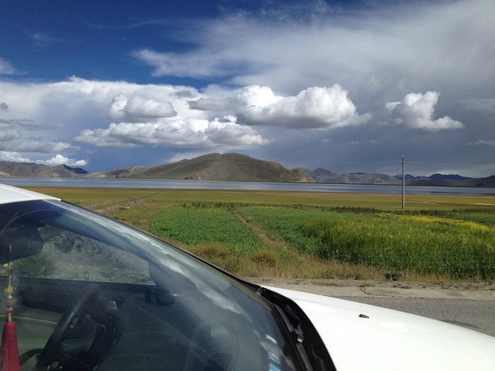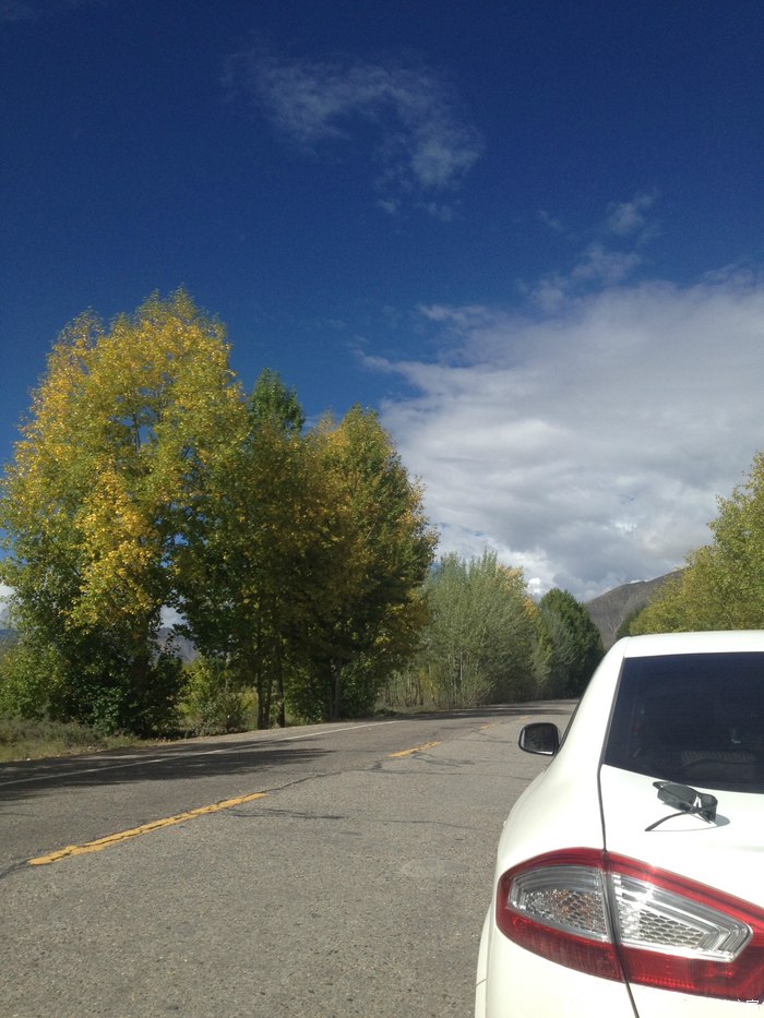 D10-01(20140913):“离日喀则还有三十多公里的时候,不忍心那对儿情侣老夫妻再通过对讲机传情达意劳燕分离,毅然忍痛要求自己驾车(主要是受不了这俩老鸳鸯如胶似漆情意绵绵的刺激啊[呲牙])。//车在夜色里穿行,清爽的空气中满兜兜的是成熟的麦香,透过天窗,天幕上星子满缀、银河横亘。听着音乐、点一支香烟,无比怡然。其实心是可以长出翅膀的…//昨日行车350余公里,蓝天黄叶、峡谷冰川、湖光雪山,美景不断,难以挪步。所谓天涯之上皆是旅人,路途景色,有人看进眼底的只是景观,有人能分享的是快乐,能心手相连琴瑟和鸣的才是旅行。不过,最触动心怀的却是在羊湖湖畔雪山脚下一个甚为偏僻的卡马龙乡,走进山谷,触摸一下尚绿的青稞和豌豆花,俯身看看溪水边不知名的野花儿,旁边走过的藏族大姐眼神清澈、话语温暖。对比卡惹拉冰川即《红河谷》拍摄地,那些个似乎出生以来就没洗过脸擦过鼻涕、眼神麻木浑浊的藏族小屁孩,不吱声不吱响的上来就拉车门索要东西,真想一脚…此行、善良的闺蜜俩口子特意准备了很多小朋友用的文具和糖果,沿途遇到可爱的藏族小孩子就分一些,但在这里居然差点遭到哄抢…不懂得感恩的付出其实是在亵渎自己的善良,世界需要文明的进步,但也需要保留一点愚昧的荒凉。//即使今天就驻步,原路返回,也有2500多公里的路程,髋关节的扭伤一时半会儿也好不了。出发以来,咽炎已经痊愈,最担心的高反却一直未特别明显的出现过,信心爆棚之时,扭伤却有加剧的迹象,这剩下的旅程难度可是增大了不少。既然身体的障碍一个接一个的来,就只能解释为人品的问题了。