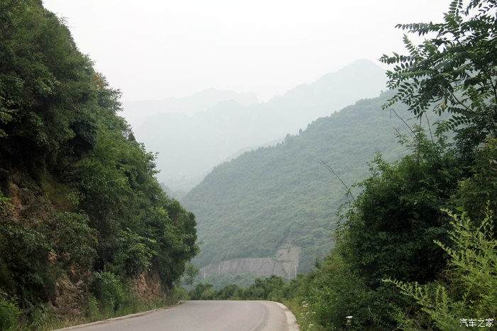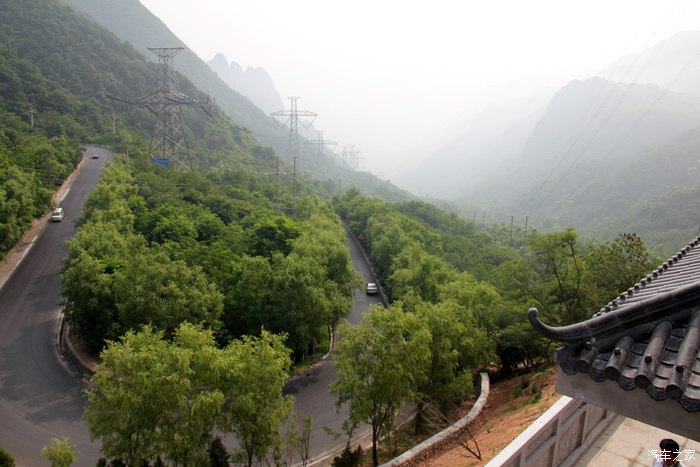 到达秦岭垭口,下望S212和峡谷,雾气朦胧。
