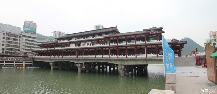 凤县廊桥全景,背后是百米喷泉,可惜白天不开。
