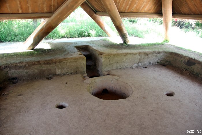 大地湾原始村落二期,进门就是火炉,以防野兽。(上面的棚子是保护用的,不是当时样子)