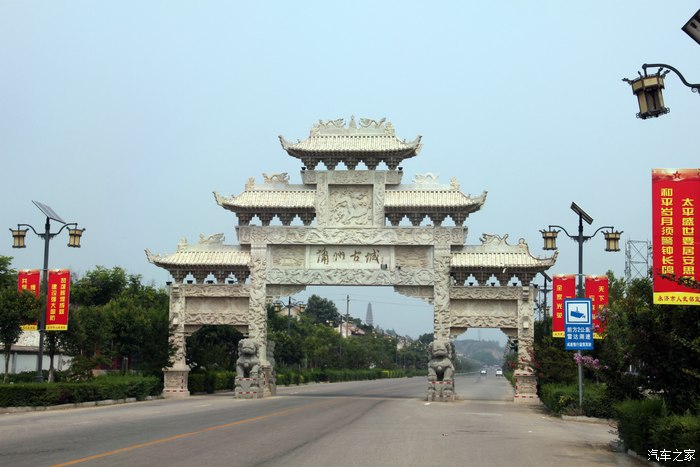 蒲州古城牌坊,古城不知在哪里?后面西厢普救寺塔依稀可见。