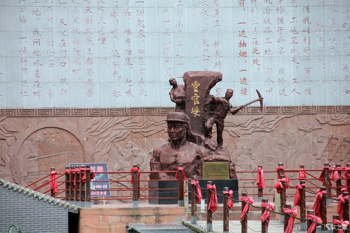 灵官峡宝成线建设纪念碑,后面是杜鹏程的《夜走灵官峡》